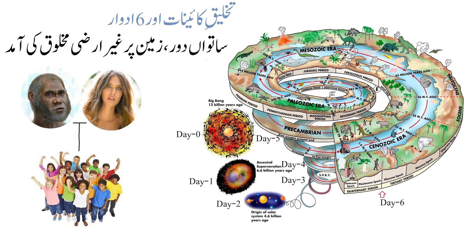 جب زمین ٹھنڈی ہوئی تو اُس پر خلاء سے برفانی تودوں نے گرنا شروع کیا اور تمام نشیبی علاقے برف کے پگھلنے کے بعد پانی سے بھر گئے ۔ جنھیں بحر و ابحار سے موسوم کیا گیا ۔ پانی تمام حیات کا لازمی جزؤ بنادیا گیا ۔ اور واحد جرثومے سے کر الارض پر حیات کی ایک کڑی نے جنم لیا ۔اِس طرح کئی کڑیاں بنتی گئیں ۔