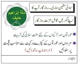 بوڑھے کو علم تھا کہ علی ابراہیم کا ایک بھائی ٹیلرنگ کا کام کرتا ہے ۔ میں نے اُس کو علی منور کا آئیڈیاپیش کیا ، اُس نے بتایا کہ اُس کی چھوٹی بہن بھی سلائی کرتی ہے وہ عورتوں اور لڑکیوں کو ٹریننگ دے سکتی ہے ۔ اور اُس کے گھر میں ایک کمرہ خالی بھی ہے وہاں یہ کام کیا جاسکتا ہے ۔ بوڑھے نے کہا الحمد للہ ۔